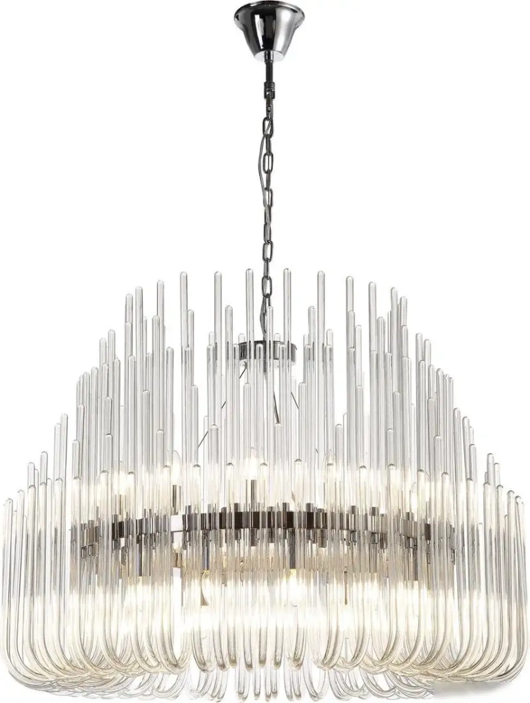 подвесная люстра, плафон прозрачный (хрусталь), каркас хром