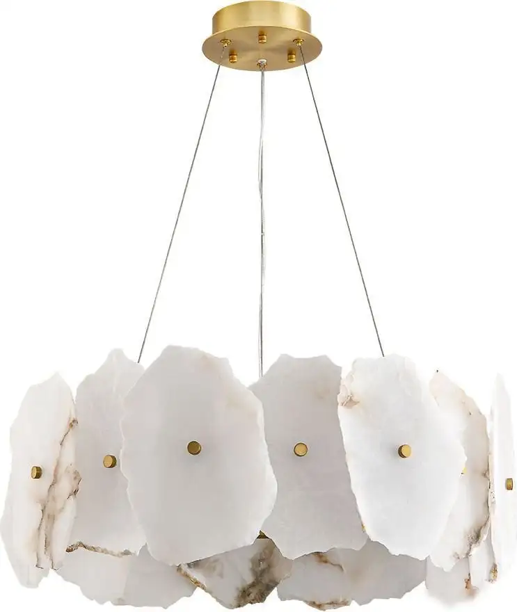подвесная люстра, плафон белый (мрамор), каркас латунь