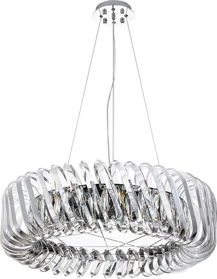 подвесная люстра, плафон прозрачный (хрусталь), каркас хром