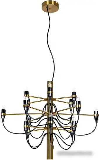 Подвесная люстра Divinare Molto 8030/17 LM-18 обладает современным дизайном и состоит из 18 ламп мощностью 15 Вт каждая. Каркас выполнен из металла в сочетании алатунь и черный цвет, что придает ей стильный внешний вид. Люстра крепится к потолку с помощью планки и имеет размеры 60x60 см при высоте 150 см. Она не имеет встроенного выключателя или дистанционного управления, поэтому управляете вы напрямую. Это устройство не поддерживает регулировку яркости, цвета свечения или температуры, но отлично освещает помещение за счет множественных ламп. Надежная конструкция и простота монтажа делают её удобной в установке и эксплуатации. Люстра идеально подойдет для тех, кто ищет яркое и красивое решение для вашей комнаты. Благодаря схеме, она хорошо сочетается с современным интерьером и создаёт уютную атмосферу.