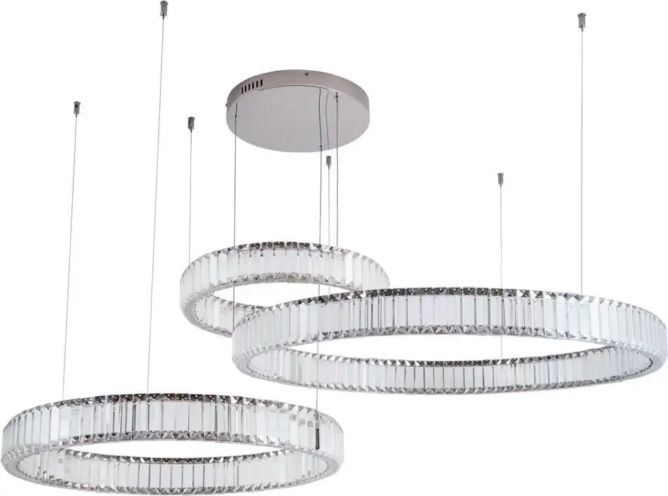 Подвесная люстра Divinare Renata 1135/02 SP-90 идеально подходит для современных интерьеров. Она оснащена одной светодиодной лампой мощностью 95 Вт, которая обеспечивает яркое освещение. Люстра имеет прозрачные плафоны из хрусталя, создающие красивый световой эффект. Каркас выполнен из прочного хромированного металла, что придаёт изделию стильный вид. Длина светильника составляет 110 см, а высота – 83 см, что позволяет легко разместить её в комнате. Планка-крепление обеспечивает надежную установку на потолке. Встроенные светодиоды позволяют экономить энергию и длительно работать без замены. В комплект входит лампочка, что удобно для быстрого использования. Эта модель подходит для гостиной, спальни или кухни, придавая помещению современный стиль и хорошее освещение. Люстра проста в монтаже и служит долговечно благодаря качественным материалам.