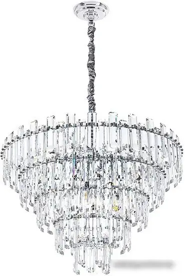 подвесная люстра, плафон прозрачный (хрусталь), каркас хром