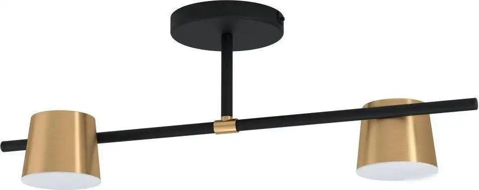 Люстра Eglo Altamira 39983 — это современное потолочное освещение с двумя лампами по 5 Вт каждая. Она имеет черный металлический каркас и золотистые плафоны из пластика, создавая стильный и уютный вид. С длиной 70 см и высотой 23,5 см она отлично подойдет для различных помещений. Люстра работает от стандартной электросети и использует цоколь GU10. Она легко устанавливается на потолке благодаря креплению на планке. Освещение не имеет регулировок яркости или цвета, что упрощает использование. Поскольку в комплекте лампочки не идут, вам потребуется выбрать подходящие самостоятельно. Конструкция без регулировки наклона и поворотных элементов делает её устойчивой и надежной. Эта модель отлично подойдет для жилых комнат, благодаря простому дизайну и хорошей яркости.