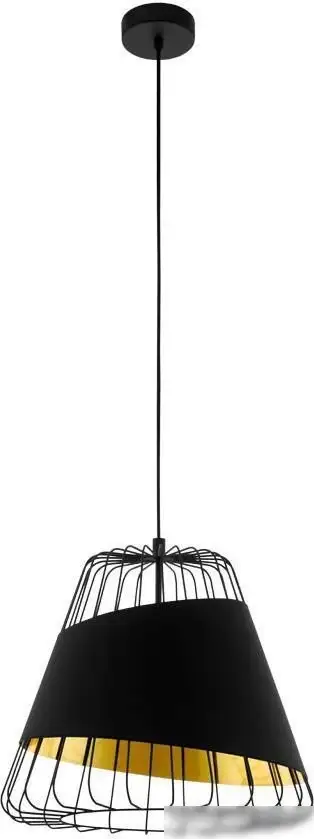 подвесная люстра, плафон золотистый/черный (металл/текстиль), каркас черный