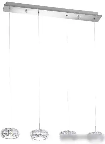 Подвесная люстра Eglo Corliano 39007 идеально подойдет для создания мягкого и приятного освещения в комнате. В ней используется 4 светодиодных лампы мощностью по 20 Вт, обеспечивая яркость 450 лм при цветовой температуре 4000 K. Люстра располагается прямо на потолке и имеет длину 91 см, ширину 16 см и высоту 166 см, что делает её заметным элементом интерьера. Каркас выполнен из металла с хромовым покрытием, а плафоны из прозрачного хрусталя добавляют изящества и позволяют свету равномерно распространяться по помещению. В комплект входит лампа, что облегчает монтаж и использование. Благодаря современным светодиодным лампам, люстра энергоэффективна и долговечна. Вес конструкции — около 4.7 кг, что гарантирует надежную фиксацию к потолку и безопасность эксплуатации.