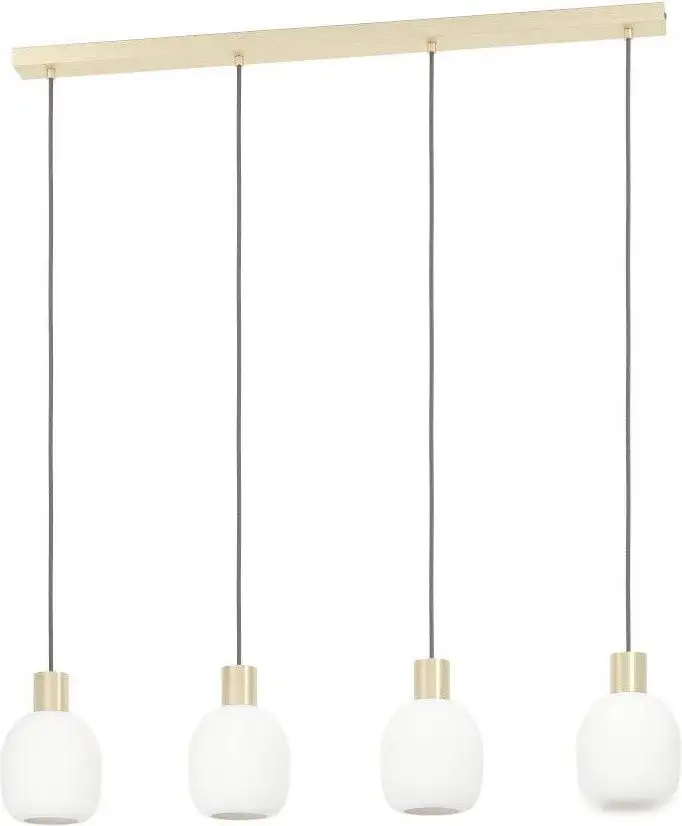 Подвесная люстра Eglo Manzanares 900306 отлично подходит для современных интерьеров. Она оснащена четырьмя лампами с цоколем E27, каждая мощностью 40 Вт, связанными с красивым золотистым каркасом и белыми плафонами из стекла. Люстра крепится к потолку на планке и имеет длину около 14,5 см и ширину 97 см, что обеспечивает хорошее освещение комнаты. Она не имеет встроенной светодиодной подсветки или функции регулировки яркости и цвета. Освещение не регулируется и не поворачивается, поэтому сразу готово к использованию. Благодаря стильному дизайну и прочным материалам, таким как металл и стекло, эта люстра создаст уютную атмосферу. Она проста в монтаже и долговечна в использовании.