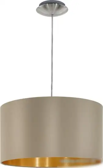 Люстра Eglo Maserlo 31602 — это современное потолочное освещение с одним плафоном. Она оснащена одной лампой мощностью 60 Вт с цоколем E27, которая легко заменяется. Каркас выполнен из матового анчика и дополнен плафоном из текстиля с золотистым и серым оттенком, что создаёт мягкий и приятный свет. Размер люстры — 38 см в длину и ширину, а высота — 110 см, что делает её подходящей для различных комнат. Люстра не регулируется по яркости и высоте, поэтому идеально подходит для постоянного освещения. Монтаж осуществляется с помощью планки, а вес — около 1,2 кг. Она не предусматривает встроенных функций вроде пульта или датчика движения. Тёмных элементов или элементов с влагозащитой в конструкции нет, что делает её простым и стильным решением. Эта модель отлично впишется в современный интерьер, добавляя уют и тепло в комнату. Благодаря качественным материалам, люстра будет долго служить без особых проблем.