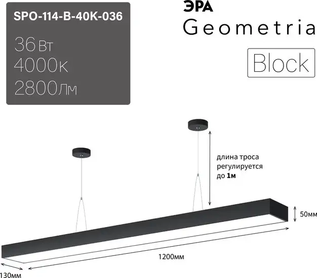 Подвесная люстра ЭРА Geometria Block SPO-114-B-40K-036 36Вт 4000К 2800Лм IP40 1200*130*50 Б0050545 (черный подвесной)