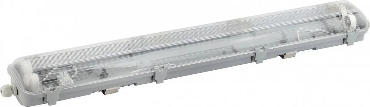 Линейный светильник ЭРА SPP-101-0-002-120 предназначен для потолочного или настенного монтажа и отлично подходит для промышленного и офисного использования. Он оснащён одной лампой с цоколём G13, которая не входит в комплект, и подключается к сети через стандартную розетку. Светильник выполнен из серого пластика с прозрачным абажуром, что позволяет мягко распределять свет по помещению. Размеры устройства — 126,5 см в длину, 10,3 см в ширину и 6,5 см в высоту, вес составляет 0,75 кг. Он не имеет регулировки яркости или цвета свечения, но обеспечивает стабильное освещение. Светильник дополняет классический дизайн и отличается повышенной влагозащищённостью (IP65), что делает его устойчивым к влаге и пыли. Устройство не оснащено поворотными лампами, датчиками движения или функциями "умного дома". Благодаря простоте монтажа и надёжности, светильник служит долговечно и легко интегрируется в различные пространства. В нем отсутствует встроенная подсветка и аварийное освещение, что делает его максимально функциональным для базовых задач освещения.