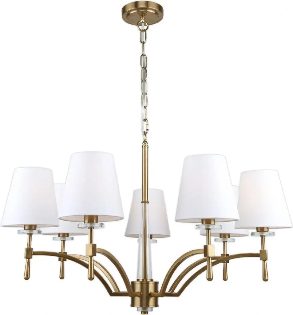 Эта подвесная люстра Escada 10163/7PL отлично подойдет для вашего дома. Она имеет семь ламп мощностью 280 Вт, которые создают яркое и теплое освещение. Каркас выполнен из прочного бронзового металла, а плафоны сделаны из белого текстиля, что придает классический стиль. Размеры люстры — 75 см в длину и ширину, а её высота — 81 см, что позволяет разместить её в просторных комнатах. Люстра не оснащена встроенными светодиодами и не регулируется по яркости, цвету или температуре. Она устанавливается на потолок с помощью крепежной планки и не имеет дистанционного управления или интеграции в "умный дом". В комплект входит монтажный набор, что облегчает установку. Ее масса составляет 3,42 кг, что делает её достаточно удобной для монтажа. Этот вариант хорошо подойдет для классического интерьера, создавая уютную атмосферу. Благодаря простому дизайну люстра легко сочетается с разными стилями комнат.