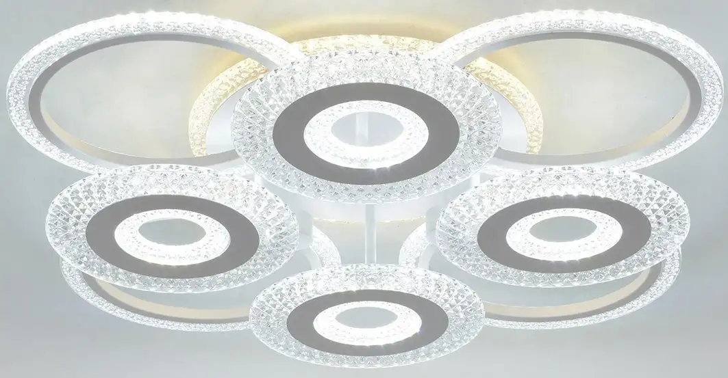 Припотолочная люстра Escada 10276/8 LED создает яркое и равномерное освещение с помощью 8 встроенных светодиодов мощностью 135 Вт. Она подключается к электросети и легко управляется с помощью дистанционного пульта, который идет в комплекте. Люстра имеет прозрачные плафоны и белый каркас, что хорошо сочетается с современным интерьером. С помощью нее можно регулировать яркость и цветовую температуру от 3000 до 6000 К, что позволяет изменять атмосферу в комнате. Световая отдача составляет 11200 люмен, а длина и ширина равны 66,5 см, высота — 13 см, вес — 2,8 кг. Встроенная светодиодная подсветка помогает экономить электроэнергию и обеспечивает долговечность работы. В комплект входит монтажный набор и есть режим ночника для мягкого освещения ночью. Эта люстра отлично подойдет для создания стильного и функционального освещения в доме.
