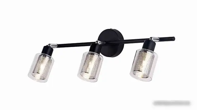 Спот Escada 1115/3A имеет современный дизайн с черным металлическим каркасом и прозрачными или серебристыми плафонами. Он устанавливается как на потолке, так и на стене, что дает гибкость в размещении освещения. В споте есть три поворотных светильника, которые можно направлять в нужную сторону для оптимального освещения. Каждый светильник использует светодиодные лампы мощностью 40 Вт, которые обеспечивают яркий свет и энергоэффективность. В комплекте нет ламп и пульта управления, что упрощает использование. Размеры спота — длина 50,5 см, ширина 9 см и высота 12,5 см.