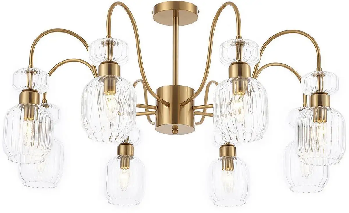 люстра средней высоты, плафон прозрачный (стекло), каркас золотистый
