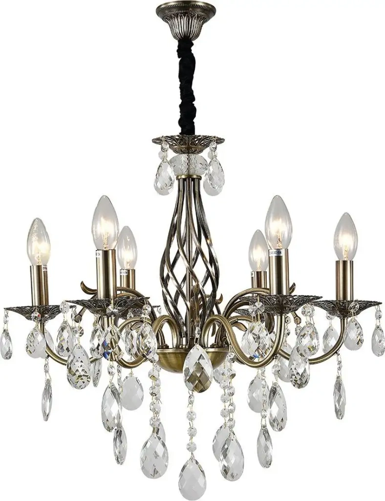 - Прозрачные хрустальные подвески — создают эффектный световой поток и вдохновляют атмосферу роскоши.
