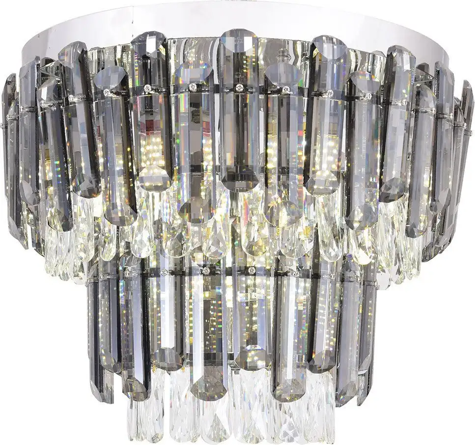 Люстра Escada 526/8 (хром) — это светильник, который отлично подходит для оформления потолка в комнате. Она имеет восемь ламп с цоколем E14, мощностью по 40 Вт каждая, и создаёт яркое освещение. Каркас сделан из металла с хромовым покрытием, а плафоны выполнены из прозрачного хрусталя, что добавляет ей элегантности. Размеры люстры — 50 см в длину и ширину, а её высота составляет 39 см, что удобно для большинства помещений. Лампы в комплекте не идут, поэтому их нужно приобрести отдельно. Люстра не регулируется по яркости или цвету, зато легко устанавливается на потолке с помощью планки. Она не имеет встроенной светодиодной подсветки и не подключается к системе умного дома, поэтому управлять светом придётся при помощи обычных выключателей. Металлический каркас и яркое стекло делают её прочной и долговечной. Эта модель подходит для классического интерьера и хорошо впишется в гостиную или спальню.