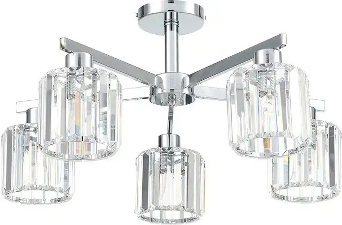 Люстра Escada Adorn 692/5P E27 в классическом стиле идеально подходит для потолочного монтажа. Она оснащена пятью лампочками мощностью по 60 Вт, что обеспечивает яркое освещение комнаты. Каркас сделан из металла, а плафоны из прозрачного стекла, что создает современный и элегантный дизайн. Размеры люстры — длина и ширина 63 см, а высота 31 см — позволяют ей легко вписаться в разные пространства. Вес устройства составляет 4,65 кг, что делает монтаж простым и удобным. Люстра не имеет встроенного регулировки яркости или цветовой температуры и не поддерживает управление с пульта или смартфона. Она крепится на планку и не включает лампочки в комплекте, что позволяет выбрать подходящие bulbs по стилю. Эта модель не влагозащищена и не оснащена функциями "умного дома". Эта люстра отлично подойдет для гостиных или кухонь с современным интерьером.