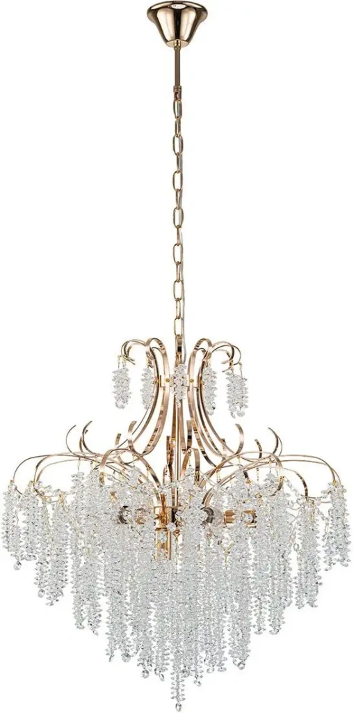 подвесная люстра, плафон прозрачный (хрусталь), каркас золотистый
