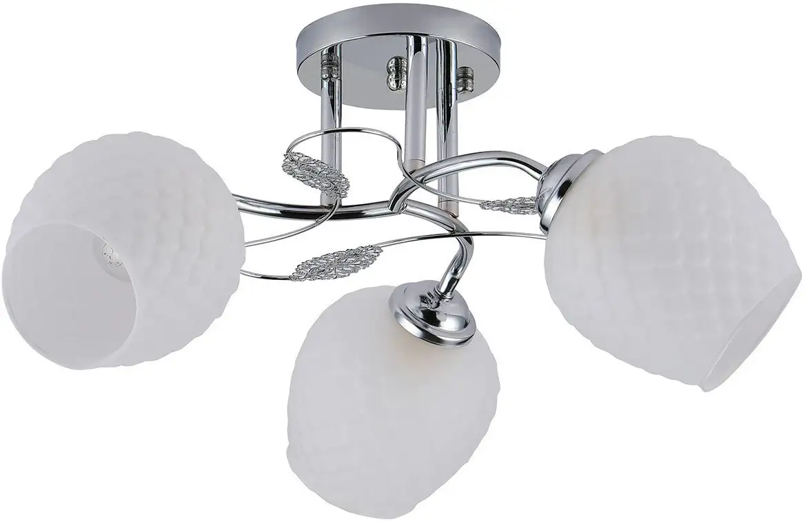 люстра средней высоты, плафон белый (стекло), каркас серебристый