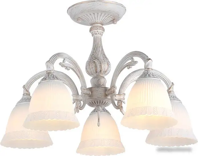 Люстра средней высоты Escada Versailles 1114/5PL обладает классическим дизайном и белыми матовыми плафонами, которые создают мягкое и равномерное освещение. Она крепится к потолку на планке и имеет пять ламп с цоколем E27, каждая мощностью 60 Вт, что обеспечивает хорошую яркость. Каркас выполнен из металла, а плафоны — из стекла, что придает изделию прочность и эстетичный вид. Люстра не оснащена функциями дистанционного управления, регулировки яркости или цвета, поэтому её эксплуатация простая и понятная. Размеры позволяют разместить её в комнатах различной площади, а вес — всего 2.95 кг, что облегчает монтаж. Изделие не имеет встроенной умной функции, однако легко вписывается в классический интерьер. В комплект входит сам светильник, крепеж и инструкция для быстрой установки. Это надежное решение для тех, кто ищет стильное и функциональное освещение без лишних технологий.