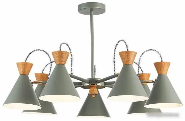 люстра средней высоты, плафон серый (металл/дерево), каркас серый