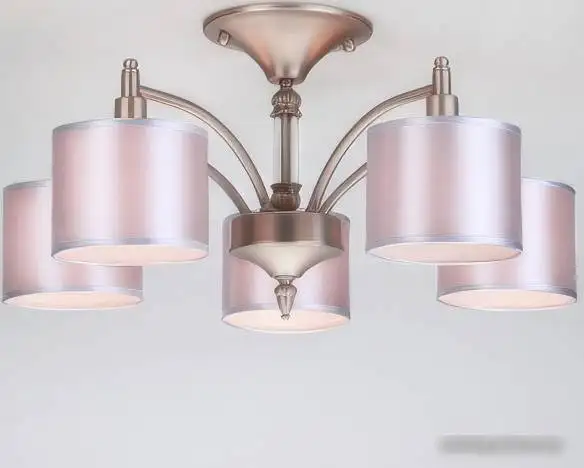 Эта люстра средней высоты отлично подойдет для потолков в гостиной или столовой. Она оснащена пятью лампами мощностью по 40 Вт каждая, что обеспечивает хорошее освещение. Каркас сделан из металла с покрытием никель, а плафоны — из текстиля серебристого цвета, придающего классический стиль. Люстра крепится к потолку на планке, ее длина и ширина по 65 см, а высота составляет 31 см. Устройство не имеет встроенного выключателя, дистанционного управления или регулировки яркости, поэтому свет будет светить постоянно.Вес люстры — около 2,55 кг, что облегчает монтаж. Она подходит для помещений с обычной влажностью, не предназначена для умного дома или для регулировки свечения. Такая лампа хорошо дополняет классический дизайн интерьера. Благодаря аккуратному стилю и хорошей яркости, она создаст уют и тепло в помещении.
