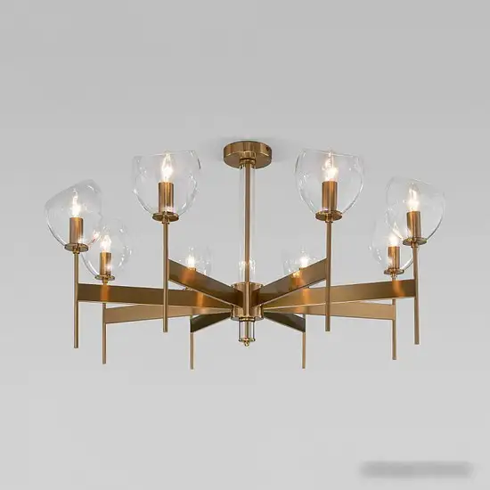подвесная люстра, плафон прозрачный (стекло), каркас латунь