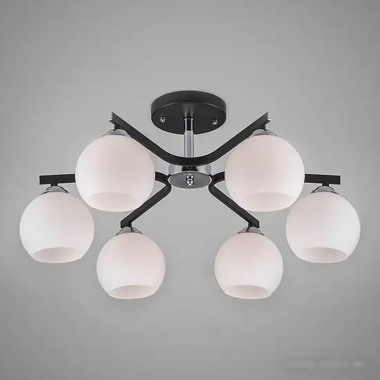 Это потолочная люстра среднего размера, идеально подходящая для любой комнаты. Она оснащена шести лампами мощностью по 40 Вт каждая, что обеспечивает хорошее освещение. Люстра выполнена в классическом стиле с белыми пластинами и хромированным каркасом, что придает ей элегантный вид. Она легко интегрируется в "умный дом" и управляется удаленно, без необходимости устанавливать выключатели или управлять вручную. Цвет и яркость свечения не регулируются, но можно выбрать оптимальное освещение при монтаже. Каркас выполнен из металла, а плафоны — из стекла, что делает конструкцию прочной и долговечной. Благодаря своему дизайну, модель хорошо подойдет для гостиных, столовых или офисных помещений. Установка осуществляется на планку, что обеспечивает надежное крепление к потолку. Вес люстры составляет 3 килограмма, и она проста в монтаже и эксплуатации.