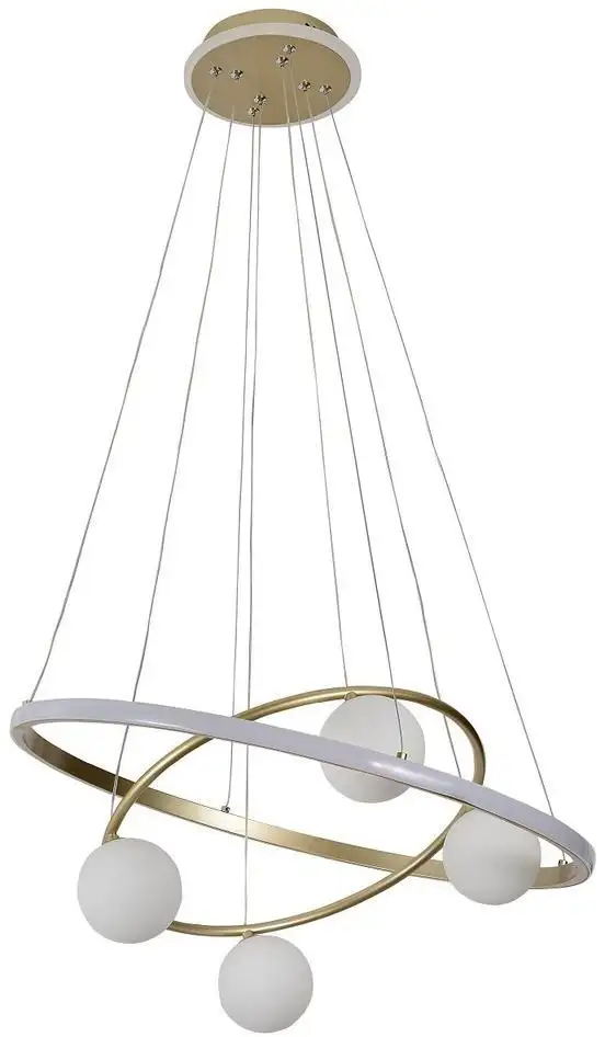 подвесная люстра, плафон белый (стекло), каркас белый/золотистый