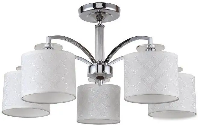 Люстра F-Promo Modum 2199-5U — стильное устройство для потолка, которое отлично подходит для любого помещения. Она оснащена пятью лампами мощностью по 200 Вт каждая, что обеспечивает яркое освещение. Каркас выполнен из металла с серебристым покрытием и имеет классический дизайн. Плафоны сделаны из текстиля и украшены белым рисунком, добавляя уют в интерьер. Люстра не имеет поворотных ламп и регулировки по высоте, устанавливается на планку. Размеры изделия — 64 см в длину и ширину, а высота составляет 32 см. Она крепится к потолку с помощью планки, обеспечивая надежную установку. Цвет плафонов и каркаса создают стильное сочетание, которое легко впишется в любой интерьер. Эта люстра не включает лампочки, их нужно приобретать отдельно.
