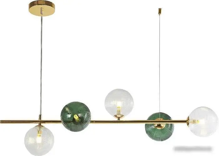 подвесная люстра, плафон белый/зеленый (стекло), каркас золотистый