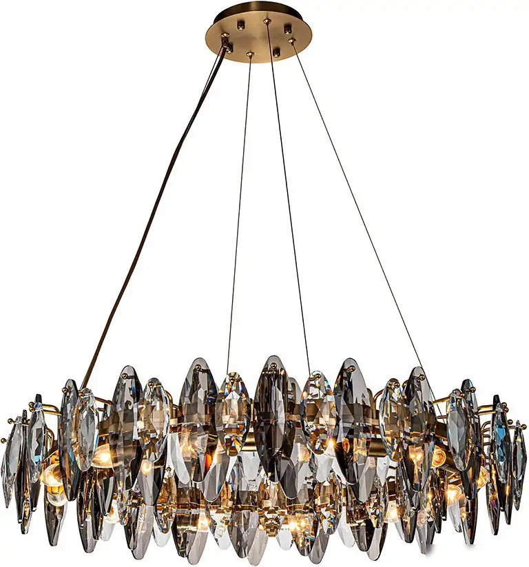 подвесная люстра, плафон золотистый/серый (хрусталь), каркас золотистый