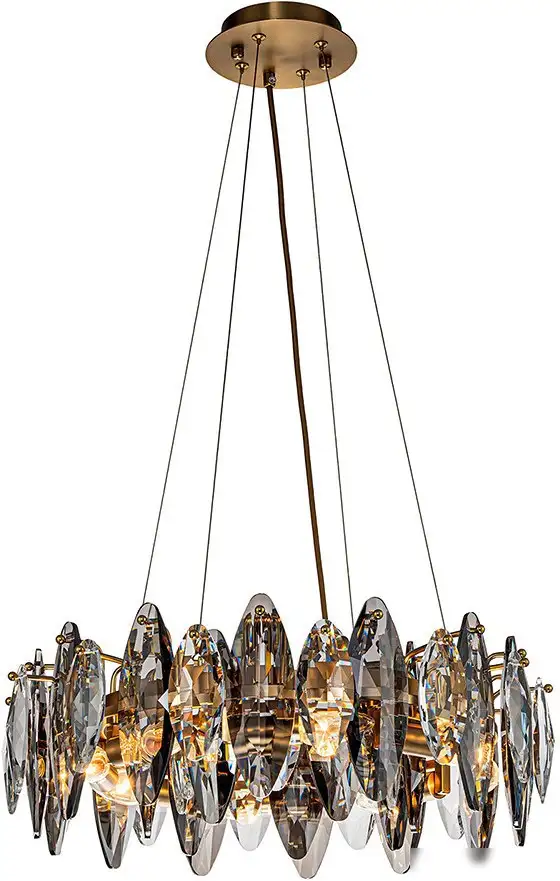 подвесная люстра, плафон прозрачный/золотистый/серый (хрусталь), каркас золотистый