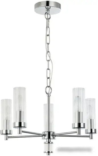 Подвесная люстра Favourite Aesthetic 2672-5P создаёт мягкий и уютный свет благодаря пяти прозрачным абажурам и хромированному каркасу. Она устанавливается на потолок и имеет размеры 46х46 см с максимальной высотой 131 см. Люстра не управляется дистанционно и не имеет функции регулировки яркости или цветовой температуры. Она работает с лампочками типа E14 мощностью по 40 Вт, лампочки в комплект не входят. Каркас сделан из металла, а плафоны — из стекла, что обеспечивает прочность и эстетичный внешний вид. Простая и современная модель подходит для жилых помещений, особенно для гостиных или спален. Благодаря прочной конструкции и классическому дизайну, она дополнит любой интерьер. Монтаж осуществляется с помощью планки, что делает установку быстрой и удобной.