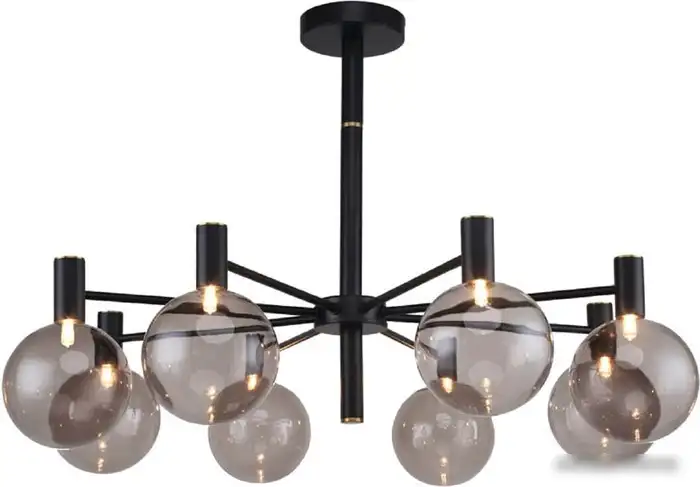 Подвесная люстра Favourite Eternity 2766-8P хорошо подойдет для комнат с высоким потолком. Она оснащена восемью лампами мощностью 25 Вт каждая, что обеспечивает яркое освещение. Лампы с цоколем G9 продаются отдельно, их можно выбрать по своему вкусу. Каркас сделан из прочного металла черного цвета, а плафоны выполнены из стекла серого цвета. Люстра имеет длину и ширину по 77 см и высоту 50 см, что делает её заметным элементом интерьера. Ее легко установить с помощью планочного крепления. Люстра не имеет встроенного выключателя и датчика движения, поэтому включается напрямую. Вес 3,3 кг делает ее достаточно легкой и удобной для монтажа. Она стильно смотрится в любом современном помещении и создаёт уютную атмосферу.