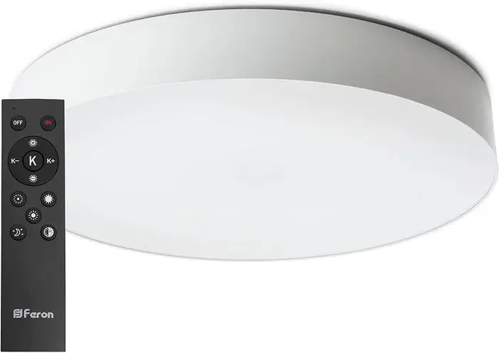 Светильник-тарелка Feron Simple matte AL6200 создает яркое и мягкое освещение благодаря встроенным светодиодам мощностью 60 Вт. Он имеет современный дизайн с белым каркасом и плафоном, что легко впишется в любой интерьер. Размер лампы 40х40 см позволяет равномерно освещать комнату, а высота всего 7 см делает устройство компактным. Светильник позволяет регулировать яркость и цветовую температуру в диапазоне 3000–6500 K, создавая комфортную атмосферу. В ночном режиме он служит ночником, мягко освещая пространство ночью. Управление осуществляется с помощью включенного в комплект пульта, что делает настройку удобной и быстрой. Лампа не интегрируется в "умный дом", но легко устанавливается на планку. Материалы каркаса — металл, плафона — пластик, что обеспечивает прочность и долговечность. Для безопасной эксплуатации рекомендуется учитывать отсутствие влагозащищенности и неподвижные лампы. В целом, этот светильник сочетает современный дизайн, удобство в управлении и хорошие технические характеристики.