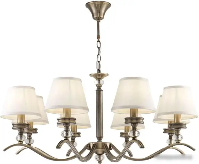 Подвесная люстра Freya Alessandra FR2016PL-08BZ отлично подойдет для просторных комнат с классическим стилем. Она оснащена восемью лампами мощностью по 40 Вт, обеспечивая яркое освещение. Каркас выполнен из прочного металла в белом цвете, а плафоны из текстиля с бронзовой отделкой создают теплый и уютный свет. Люстра имеет длину и ширину по 81 см и высоту 151 см, что делает ее заметным элементом интерьера. Установка осуществляется на крюк, конструкция надежна и долговечна. Регулировка высоты отсутствует, но конструкция легко монтируется. Влагозащищенность не повышена, что подходит для помещений с сухим климатом. Лампы в комплект не входят; управление осуществляется вручную, без дистанционного пульта. Эта модель добавит классическую изысканность в вашу гостиную или столовую.