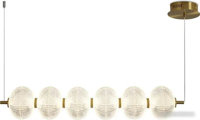 Подвесная люстра Freya Awella FR6135PL-L22BT — современное решение для обустройства потолка. Она оснащена одной светодиодной лампой мощностью 22 Вт, которая обладает яркостью 2503 люмен и теплым светом 3000 K. Люстра имеет прозрачный абажур из акрила и металлический каркас в цвете латунь, что придает ей стильный и современный вид. Длина устройства составляет 82 см, ширина — 15 см, а высота — 163 см, что делает её подходящей для просторных комнат. Вес люстры — всего 2,5 кг, и она крепится к потолку на планку. Благодаря плафону из акрила, свет рассеется мягко и равномерно. Люстра легко монтируется и легко эксплуатируется в помещении. Она не обладает повышенной влагозащищенностью, поэтому лучше использовать её в сухих помещениях.