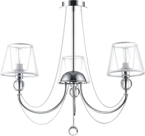 подвесная люстра, плафон прозрачный (текстиль), каркас хром