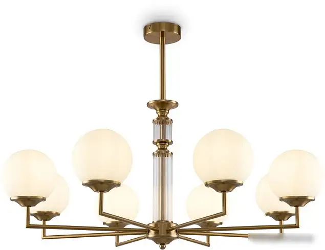 Люстра Freya Bolas FR5185PL-08BS — это стильное светильник для потолка средней высоты. Она оснащена восемью лампами мощностью по 60 Вт, что обеспечивает яркое освещение комнаты. Каркас выполнен из металла бронзового цвета, а плафоны изготовлены из белого стекла, что придает ей современный и элегантный вид. Размер люстры составляет 80,5 см по длине и ширине, а высота — 61 см, она легко подойдет для большинства помещений. Люстра крепится на планке, что обеспечивает надежную фиксацию. В конструкции отсутствуют функции регулировки яркости и цветовой температуры, а также удаленное управление или интеграция в "умный дом". Ее вес — 3 кг, что облегчает монтаж. Эта люстра отлично подходит для гостиной, столовой или другой комнаты, создавая приятную атмосферу освещения.