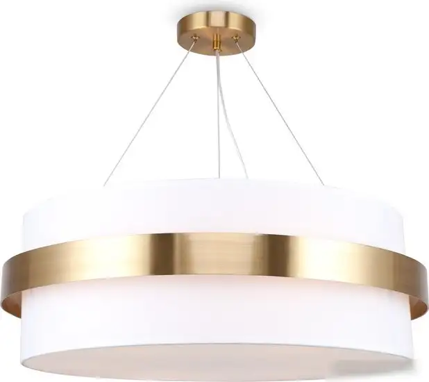 подвесная люстра, плафон белый, каркас латунь