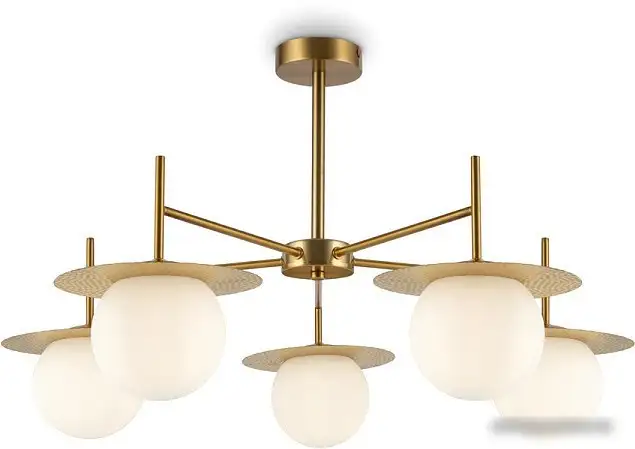 - Элегантный дизайн с золотистым каркасом и флористическими плафонами.