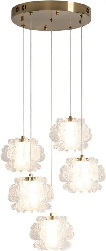 Подвесная люстра Freya Flower FR5579PL-L40BS — это современное освещение для дома. Она устанавливается на потолок и имеет пять светодиодных ламп с прозрачными плафонами, создавая яркий и приятный свет. Каркас выполнен из прочного металла золотистого цвета, а плафоны — из акрила, что придает изделию стильный вид. Благодаря встроенным светодиодам, люстра обеспечивает световой поток в 3500 люмен и теплую цветовую температуру 2800K. Размеры люстры — 42 на 42 сантиметра, а высота достигает 250 сантиметров, что позволяет легко разместить ее в комнате любой высоты. Вес устройства — около 2.8 килограммов, и оно крепится к потолку планкой. Эта модель не предусматривает регулировку цвета свечения или температуры, что упрощает использование. Встроенные светодиоды экономят электроэнергию и требуют меньшего ухода. Люстра легко подключается к существующей электросистеме и обеспечивает стабильное, яркое освещение. Для долгой эксплуатации она не требует дополнительных настроек и дополнений.