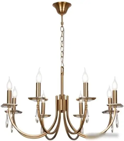 Подвесная люстра Freya Forte FR1006PL-08G выполнена в классическом стиле и отлично подходит для любых помещений. Она имеет восемь ламп мощностью по 40 Вт каждая, что обеспечивает хорошее освещение. Люстра закрепляется к потолку на цепи длиной 1000 мм, а её высота регулируется при монтаже. Каркас и плафоны сделаны из металла латунного цвета, что придает изделию надежный и стильный вид. Размеры: диаметр потолочной чаши — 115 мм, высота — 145,8 см, минимальная — 63,3 см, вес — 3,6 кг. Устройство не управляется пультом или с помощью приложения, и регулировка яркости отсутствует. Она проста в установке и долговечна благодаря металлическим компонентам. Важной особенностью является классический дизайн, который легко впишется в интерьер.Люстра не имеет встроенных функций повышения влагозащищенности или поворотных ламп. Для безопасного и уютного освещения она подойдет как для жилых, так и для коммерческих помещений.
