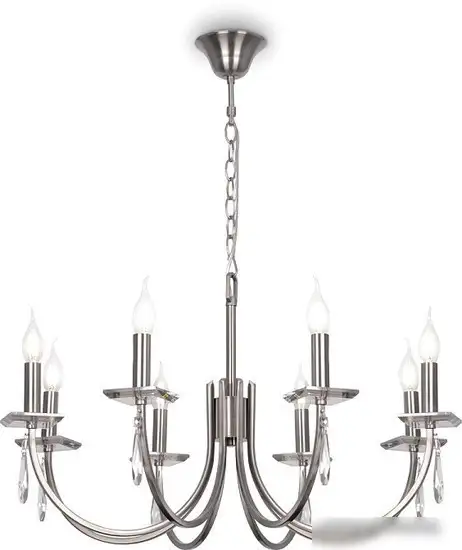 Подвесная люстра Freya Forte FR1006PL-08N выполнена в стиле американской классики с современными формами. Она имеет 8 лампочек цоколя E14, каждая мощностью 40 Вт, что обеспечивает яркое и равномерное освещение комнаты. Металлическая арматура представлена в оттенке никель, что придает изделию элегантный и нейтральный вид. Размеры люстры — 72 см в длину и ширину, высота — 145,8 см, что позволяет разместить её в просторной комнате на потолке. Открытые источники света создают мягкое и яркое освещение, а возможность комбинировать с бра, торшерами и настольными лампами серии помогает организовать разные световые сценарии. Благодаря высококачественным хрустальным подвесам дизайн становится более изысканным и шармным. Люстра хорошо впишется в интерьеры в стилях неоклассика, модерн и ар-деко. Она легко монтируется и подойдет для помещения с высокой или средней высотой потолка.