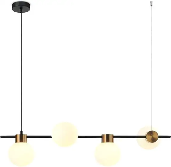 - Стильный дизайн: сочетание белых стеклянных плафонов и металлического каркаса создает современный внешний вид.