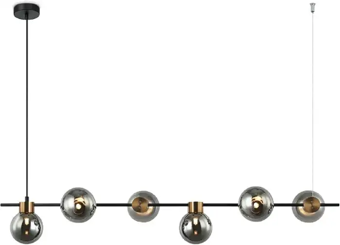 Подвесная люстра Freya Gatsby FR5232PL-06B1 имеет современный дизайн с сочетанием золотистого и черного цветов. Она крепится к потолку планкой и занимает место в комнате благодаря своей длине 118 см и высоте 170 см. Люстра оснащена шести лампами с цоколем G9, каждая мощностью 150 Вт, что обеспечивает хорошее освещение. Каркас выполнен из металла, а плафоны сделаны из стекла — это создает стильный и прочный внешний вид. Люстра подходит для установки в просторных комнатах или гостиных. Регулировка яркости отсутствует, однако яркое освещение легко достигается за счет мощности ламп. Купить эту люстру просто и она станет заметным украшением интерьера. Устройство не оснащено дистанционным управлением. Благодаря современному дизайну она легко вписывается в разные интерьеры.