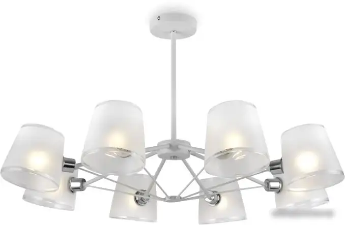 Подвесная люстра Freya Gino FR5108PL-08CH идеально подходит для современного интерьера. Она оснащена 8 лампами с цоколем E14 и мощностью 40 Вт каждая, что обеспечивает яркое и равномерное освещение. Каркас выполнен из металла, а плафоны сделаны из стекла с матовым покрытием, что создает мягкий свет и приятную атмосферу. Люстра имеет длину и ширину по 83 см, высоту 46 см и весит около 1,6 кг, что удобно для монтажа в стандартных помещениях. Управление не предусматривает пульт, монтаж осуществляется на планку, а регулировка высоты отсутствует. Благодаря современному дизайну она станет украшением любой комнаты. В люстре отсутствует управление с пульта и повышенная влагозащищенность. Эта модель подходит для гостиной, столовой или спальни, дополняя интерьер стильным и функциональным освещением.