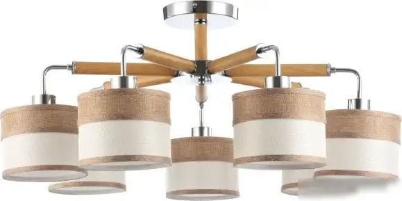 Люстра Freya Helen FR5329-PL-07-CH — это потолочное освещение с 7 лампами мощностью по 40 Вт, которая создаст яркий свет в любой комнате. Ее белые плафоны из текстиля и коричневый хромовый каркас придают современный и элегантный вид. Люстра имеет стильный дизайн и легко устанавливается на потолок с помощью планки. Благодаря размеру 76x76 см и высоте 30,5 см она подходит для просторных помещений. Каркас выполнен из прочного металла, а плафоны из текстиля, что делает конструкцию надежной. Устройство работает без регулировки яркости, и в комплекте не идут лампочки. Нет встроенной функции поворота ламп или дистанционного управления. Эта модель подходит для тех, кто ищет простое и современное решение для освещения. Люстра не имеет функции повышенной влагозащищенности и подходит для сухих помещений.