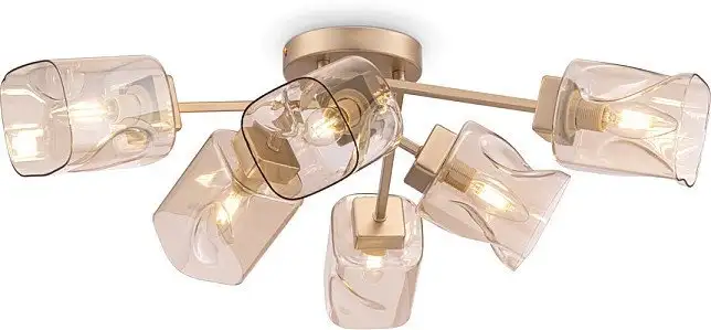 | Информация | Серия Isabella – прекрасный вариант для современных интерьеров в теплой цветовой гамме. Арматура цвета матового золота выполнена из металла, а плафоны необычной формы – из янтарного стекла. Благодаря небольшой высоте потолочные светильники Isabella можно использовать в помещениях с невысокими потолками. Широкая линейка включает 3 потолочных светильника на 8, 6 и 4 рожка, а также бра. |