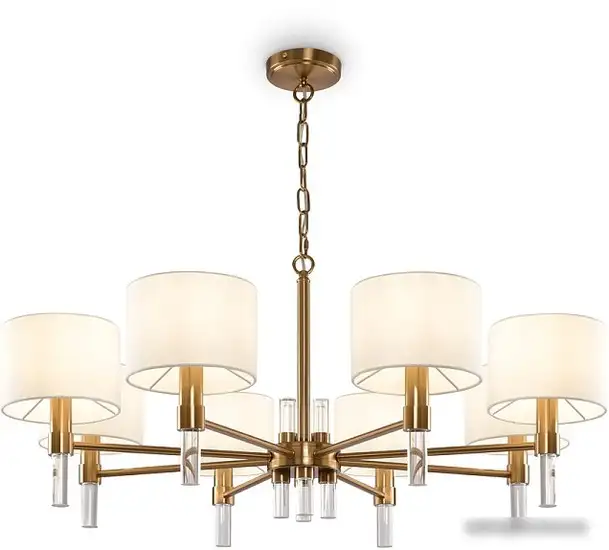 подвесная люстра, плафон белый (текстиль), каркас латунь